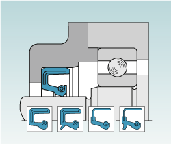 Radial-Wellendichtungen sind einbaufertige Dichtelemente mit radial angeordneter Dichtlippe zur Abdichtung von Wellen und Achsen. Die Dichtung besteht aus einer Gummimanschette, einem metallischen Versteifungsring und einer ringförmigen Schraubenzugfeder.